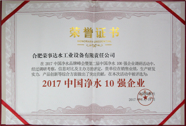 - 榮事達再斬“中國凈水10強企業(yè)”、“消費者滿意品牌”等多項大獎