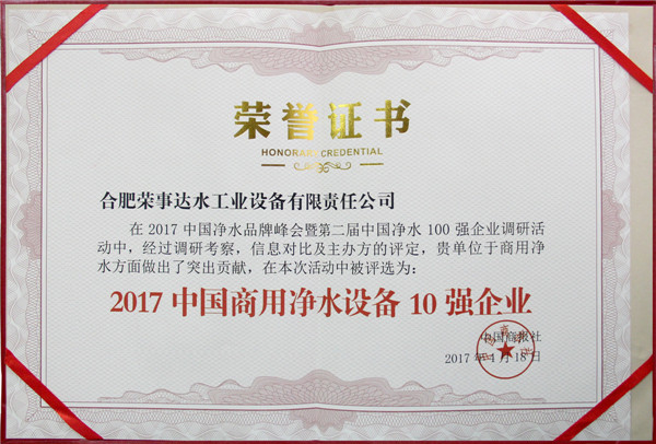 4月18日,2017中國凈水品牌峰會暨第二屆中國凈水100強企業(yè)頒獎盛典在北京維景國際大酒店盛大舉行。榮事達憑借強勁實力和消費者的信賴斬獲“2017中國凈水10強企業(yè)”、“2017中國商用凈水設備10強企業(yè)”、“消費者滿意品牌”多項大獎。