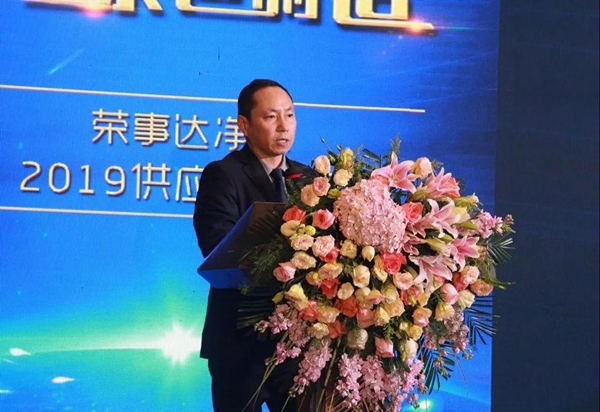 董事長雷鳴首先向與會嘉賓致以熱烈歡迎。雷董講道,榮事達的快速發(fā)展離不開廣大供應商的鼎力支持。2018年,榮事達深入貫徹綠色制造,布局十大水處理藍圖,建成凈水科創(chuàng)中心,引進更多智能化生產(chǎn)線,實現(xiàn)了企業(yè)架構(gòu)、科研創(chuàng)新、生產(chǎn)規(guī)模、市場運營的突破發(fā)展。2019年,榮事達將繼續(xù)秉承新時代“工匠精神”理念,為消費者提供更多高品質(zhì)產(chǎn)品。最后,雷董向在座所有嘉賓提出了新一年的要求,希望大家初心不改,彼此攜手,共鑄產(chǎn)品質(zhì)量,共融發(fā)展信心,共創(chuàng)美好未來。