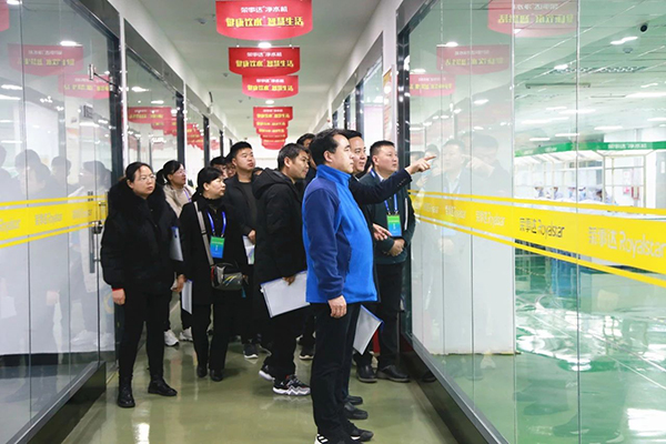 此次交流考察活動注重產業融合、實地教學,除了專項研討座談,領導們還實地走訪了榮事達智慧水世界展廳、凈水科研實驗室、智能化生產車間等,詳細了解企業綜合實力、十大水處理布局、新品開發等情況,現場體驗了企業最新研發定制的節能直飲水設備、智慧管理系統等諸多創新技術。
