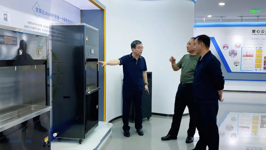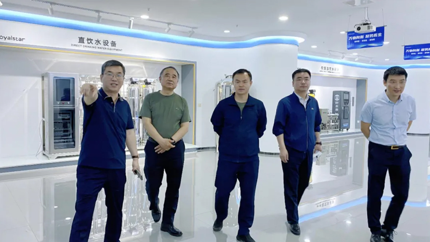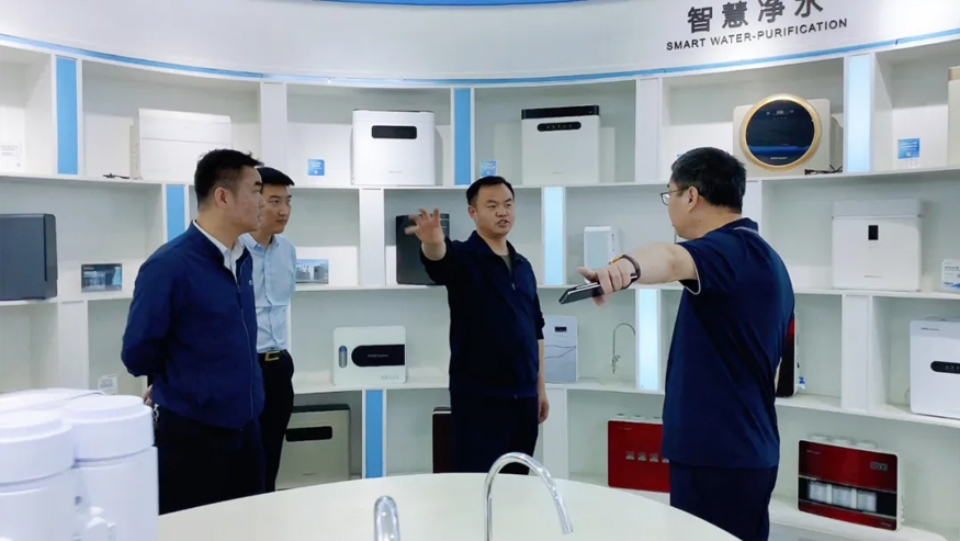 領導一行參觀了解集團的全屋智慧凈水項目、社區智慧飲水項目以及校園直飲水項目等。