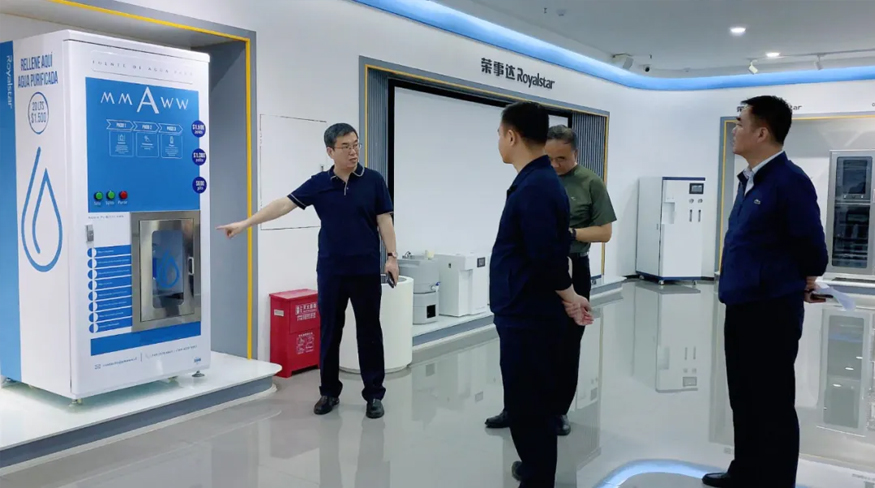 領導一行了解到榮事達水工業作為全國凈水行業的“一帶一路”先鋒企業,始終秉持著品牌建設和產品質量的核心理念,積極投身于海外市場的開拓與深耕,與多國建立貿易合作,從產品到工程,公司加速全球化營銷網絡構建,國際化步伐加快。