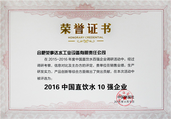 “中國直飲水百強企業”的評定是對凈水企業的銷售業績、生產能力、產品創新以及消費者品牌認知、消費者服務滿意度5方面的高度認可,樹立凈水行業發展標桿、促進行業健康穩步發展,同時,將對消費者選購凈水器產生重大參考意義。