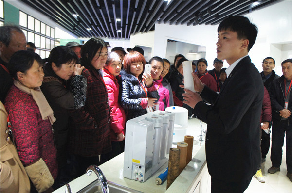 此批消費者大多來自于鄉(xiāng)鎮(zhèn)地區(qū),他們普遍反映,由于井水水垢水堿較重,味道苦咸,兒女回家過年都喝不慣。為了徹底解決家里的飲水難題,許多消費者有安裝凈水機的打算,但是如何選擇放心的品牌,卻著實不易?!澳芨鷣砜纯磧羲畽C生產(chǎn)廠家,了解到產(chǎn)品質(zhì)量和售后都有保障,心里很踏實,回去裝上家人喝水安全,用著也比去買桶裝水更方便。”巢湖的劉大爺笑著說。