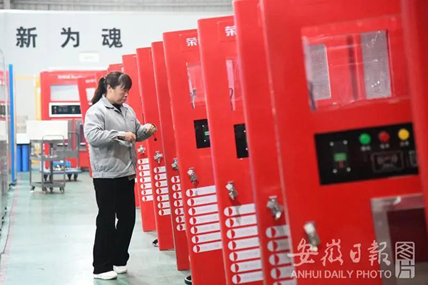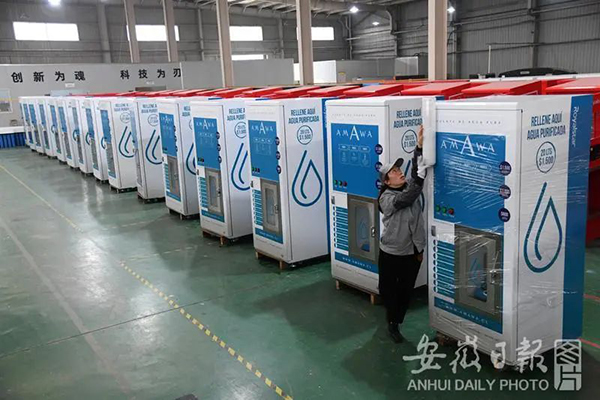 員工在自動售水機(jī)生產(chǎn)線上作業(yè)