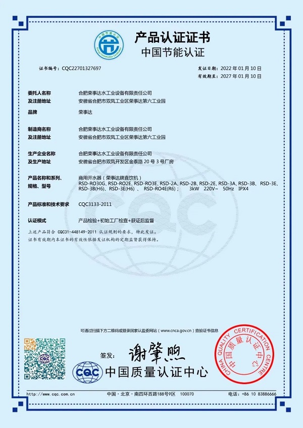 榮事達(dá)RSD-RO3E直飲機(jī)和榮事達(dá)RSD-RO2E幼兒園機(jī)均采用節(jié)能熱交換技術(shù),省時(shí)省電,實(shí)現(xiàn)了節(jié)能環(huán)保理念,獲得了中國(guó)節(jié)能認(rèn)證。