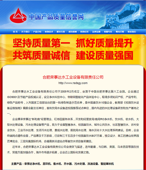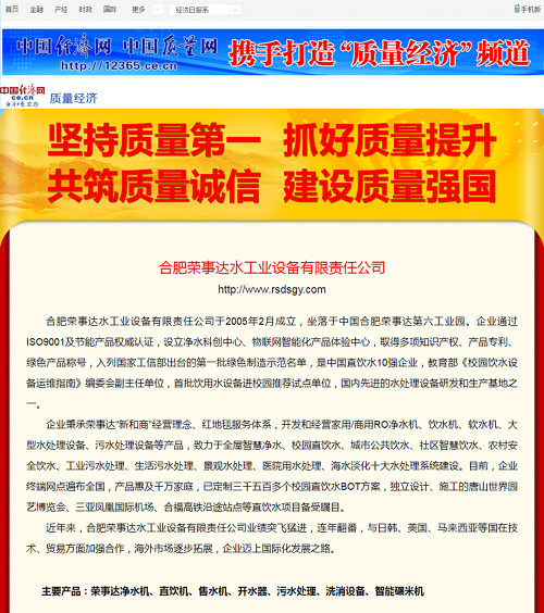 榮事達水工業集團積極響應全國“質量月”活動,彰顯企業的社會責任和擔當,面向全國用戶做出相關產品和服務質量誠信承諾,一舉拿下五項殊榮,相關承諾和獲獎情況已在《中國質量網》《中國經濟網》《中國產品質量信譽網》在線發布。