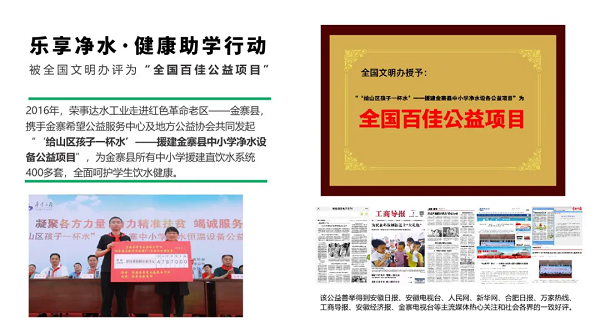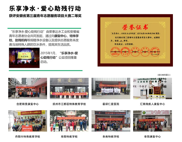 榮事達(dá)水工業(yè)公司積極投身于公益事業(yè),其公益行動廣泛覆蓋健康助學(xué)、愛心助殘、精準(zhǔn)扶貧及鄉(xiāng)村振興等多個領(lǐng)域,公益的足跡遍布全國。公司用實(shí)際行動踐行社會責(zé)任,彰顯企業(yè)擔(dān)當(dāng),贏得了社會各界的廣泛贊譽(yù)。