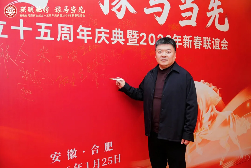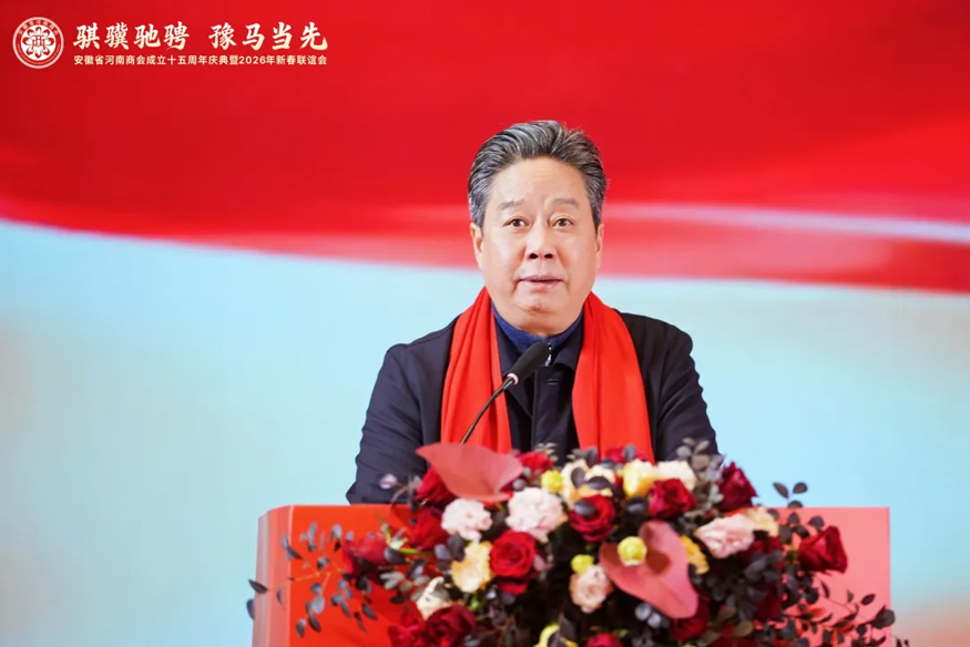 騏驥馳騁,豫馬當(dāng)先。元月25日下午,安徽省河南商會(huì)成立十五周年慶典暨2026年新春聯(lián)誼會(huì)在合肥白金漢爵大酒店隆重舉行。安徽省食品藥品監(jiān)督管理局原一級(jí)巡視員李長(zhǎng)在,安徽省合作交流辦公室副主任陳龍,安徽省社會(huì)組織總會(huì)會(huì)長(zhǎng)、安徽省審計(jì)廳原一級(jí)巡視員賈寶明,安徽省工商聯(lián)三級(jí)調(diào)研員宋翠琳,安徽省退役軍人事務(wù)廳原一級(jí)巡視員梅德林,安徽省邊防總隊(duì)原政委袁同海,一〇五醫(yī)院原副院長(zhǎng)趙連才,安徽省國(guó)土資源廳原紀(jì)檢組長(zhǎng)江獻(xiàn)軍,安徽省委人事廳原編委辦主任趙振英,安徽省經(jīng)信廳原老干部局局長(zhǎng)展巖,安徽省煤炭設(shè)計(jì)院原院長(zhǎng)閆紅新,安徽省衛(wèi)生管理學(xué)院原副院長(zhǎng)趙國(guó)子,安徽省委政法委原掃黑辦副主任張劍鋒,安徽省委黨校原二級(jí)巡視員張金友等與駐馬店市商務(wù)局副局長(zhǎng)柳曉剛、市工商聯(lián)副主席張永紅等家鄉(xiāng)領(lǐng)導(dǎo)出席盛會(huì)。在皖兄弟商會(huì)、省級(jí)異地商會(huì)及友好商協(xié)會(huì)、全體會(huì)員及社會(huì)各界朋友500余人齊聚一堂,共敘鄉(xiāng)梓情誼,共話發(fā)展新篇。